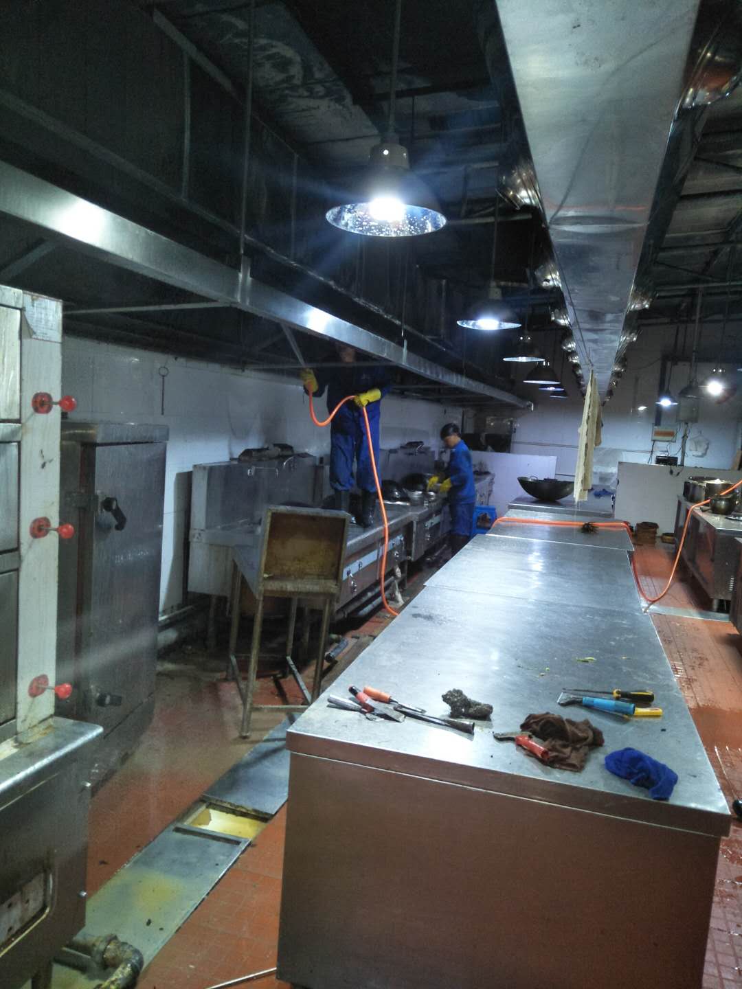 煙道是賓館、酒樓廚房的基礎(chǔ)設(shè)施,極易藏污納垢,是清理的死角。同時煙道是消防、衛(wèi)生、防疫部門檢查的重點區(qū)域.煙道、煙罩若不經(jīng)常清洗,積油越積越多,順著煙罩自然倒流,不僅影響飯菜質(zhì)量,而且還有損酒店信譽(yù)。同時,煙道中易寄生老鼠、蟑螂,不符合國家衛(wèi)生標(biāo)準(zhǔn).油膩膠狀物長期扒附在金屬表面,還會腐蝕金屬材料,縮短煙道使用壽命。由于酒店食堂廚房排煙罩因長期積油,煙道、煙罩常年處于高溫工作環(huán)境,油煙氣化形成積油、積炭或油膩的膠狀物。很容易引起火災(zāi)。使用專用的煙道、煙罩清潔劑,對煙道金屬材料清潔后,能在材料表面附著一層保護(hù)膜.在攝氏80度時,自動散發(fā)二氧化碳阻止燃燒.徹底解決客戶的后顧之憂。