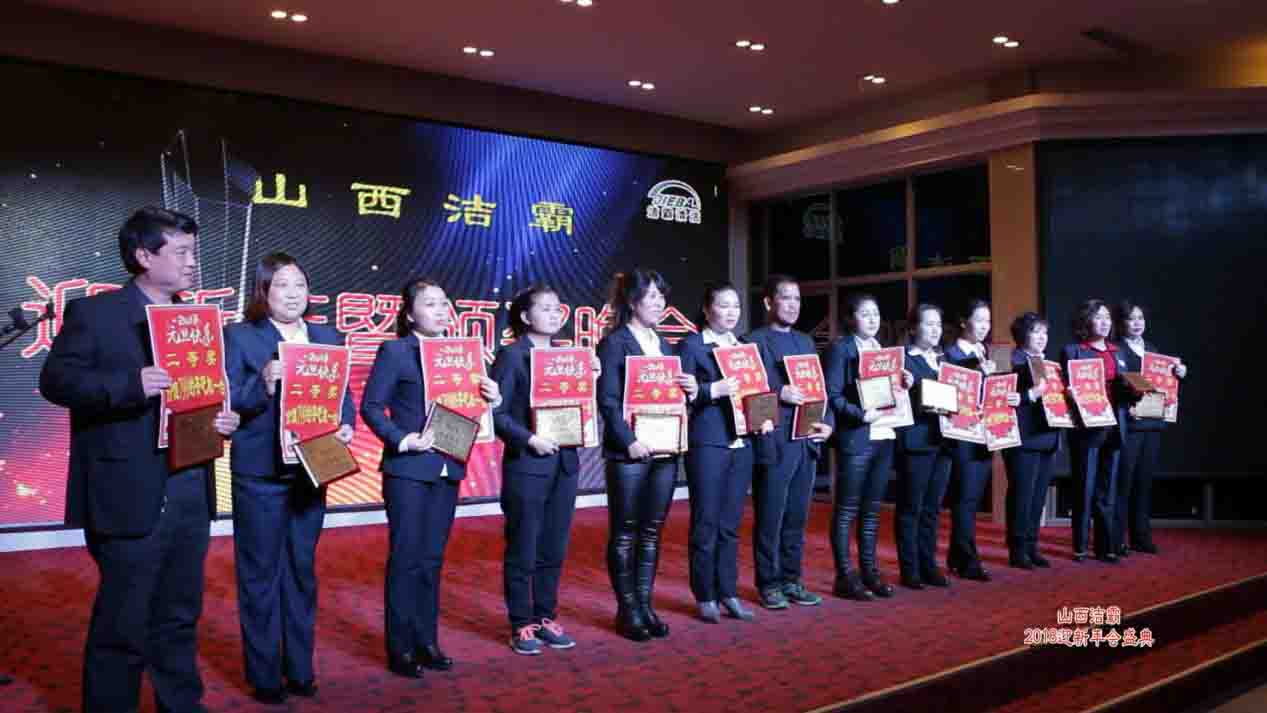 時(shí)光飛逝,歲月更迭,轉(zhuǎn)眼間忙碌的2017年已經(jīng)過去,充滿希望的2018年向我們走來。山西潔霸已經(jīng)走過了18個(gè)春夏,新的一年,孕育著新的目標(biāo)和希望,山西潔霸2018年迎新年年會(huì)盛典于2018年1月1日在芙蓉大酒店隆重舉行。公司領(lǐng)導(dǎo)、同事以及公司各戰(zhàn)略合作伙伴共聚一堂。
