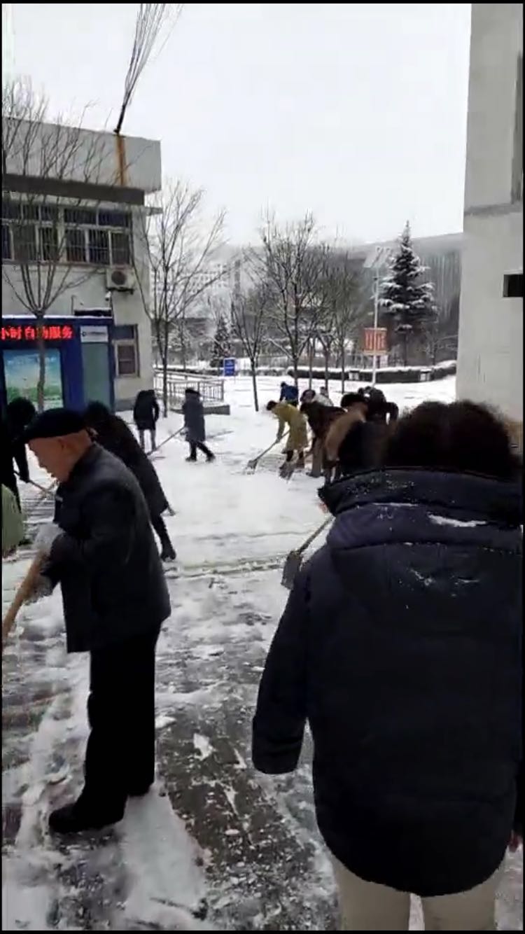 公司管理人員積極組織各項(xiàng)目點(diǎn)員工進(jìn)行主干道路面清雪(左上圖為晉城職業(yè)技術(shù)學(xué)院、右上圖為太原體彩中心)