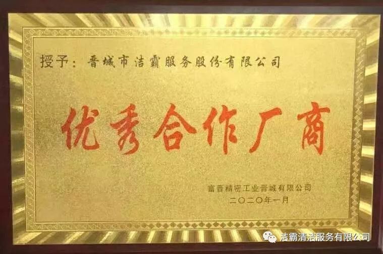 1月21日,富士康(晉城)科技工業(yè)園區(qū)召開2019年綠化環(huán)衛(wèi)服務(wù)廠商表彰大會。會上,我公司喜獲“優(yōu)秀合作廠商”稱號。