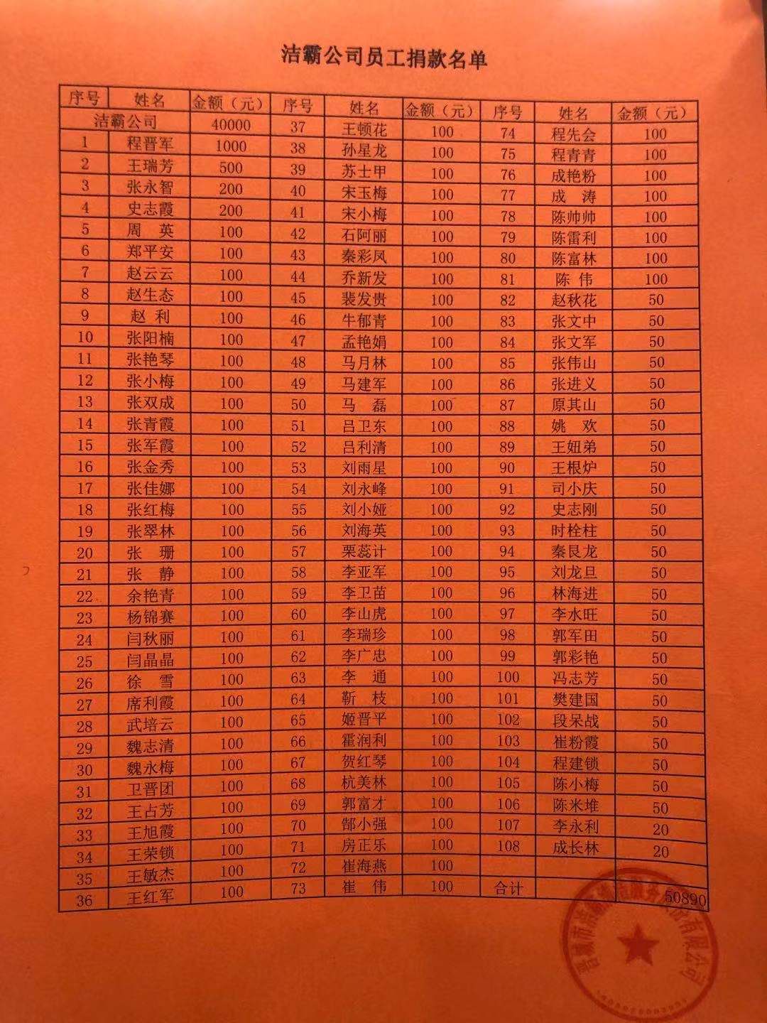 為避免疫情期間大規(guī)模聚集,公司捐款活動(dòng)采取微信轉(zhuǎn)賬形式進(jìn)行,僅僅一天多時(shí)間,共募集善款一百余筆,累計(jì)金額10890元。加之公司捐助的40000元,共計(jì)50890元,F(xiàn)已統(tǒng)一轉(zhuǎn)入晉城市紅十字會(huì)賬戶,定向捐助晉城市第二人民醫(yī)院用于疫情防控工作。
