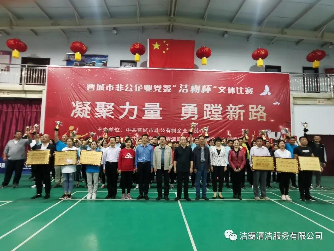 9月25日下午,晉城市非公企業(yè)黨委“潔霸杯”文體比賽落下帷幕。此次比賽由中共晉城市非公有制企業(yè)委員會主辦,中共晉城市潔霸清潔服務股份有限公司支部委員會冠名協(xié)辦。此次活動的主題是“凝聚力量 勇蹚新路”,旨在新中國成立71周年之際,全面展示非公企業(yè)黨組織開展群眾性體育活動的豐碩成果,以及廣大黨員干部創(chuàng)先爭優(yōu),奮發(fā)進取,勇蹚新路,爭做時代先鋒的精神風貌。