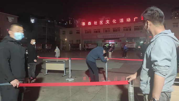 在泰森社區(qū)文化活動廣場,志愿者們擺桌子、拉警戒線、撐帳篷,齊心合力協(xié)助社區(qū)工作人員完成核酸檢測采樣點(diǎn)位設(shè)置及物資配備,同時積極引導(dǎo)社區(qū)居民進(jìn)行掃碼登記、測量體溫,提醒社區(qū)居民全程佩戴口罩,在排隊(duì)期間保持一米間距,組織居民做好分組,提前亮碼,核酸檢測完成后有序離場。雖然天氣較冷,但志愿者們毫無怨言,服務(wù)熱情很高,直至晚上12點(diǎn),協(xié)助社區(qū)完成了9000余人的核酸檢測工作。