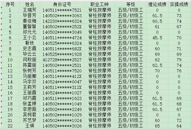2024年10月13日第11批保健按摩師初級認定人員成績公示